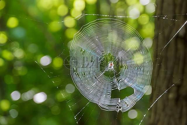 其實呢,蜘蛛的腹部有六種腺體,稱為吐絲器。各種腺體產生不同類型蛛絲,腺體頂端有噴絲頭,其上有數子只小孔,噴出的液體一遇空氣即凝結成黏性強、張力大的蜘絲。據說一千根蜘絲合并后比人的頭發絲還要細十分之一。并且蜘絲中一種絲纖朊蛋白質組成,就特定的直徑來說,蛛絲的抗張強度比鋼還要大。
